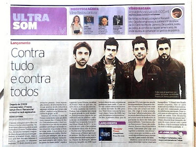 Saiu hoje uma matéria no Jornal da Tarde falando sobre o disco REVANCHE, a matéria fala sobre a mudança na sonoridade das músicas que deixaram de ser tão leves quanto eram no CD REDENÇÃO e dessa vez vieram com belos e fortes riffs de guitarra, mas que continuam com letras fortes, tocantes, realistas e totalmente lindas.