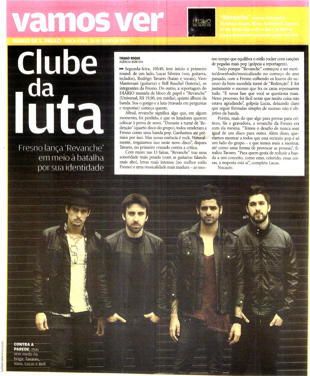- Mais uma bela entrevista com a Fresno no site VIRGULA acesse e confira, lá você poderá ver o video com a entrevista completa.